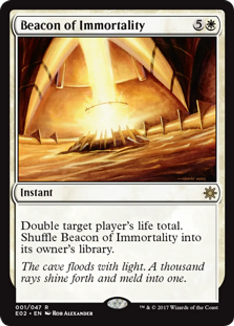 | Oracle Text | Double target player's life total. Shuffle Beacon of Immortality into its owner's library. | ||