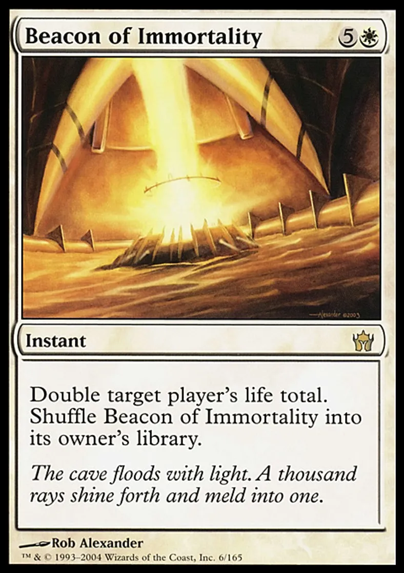 | Oracle Text | Double target player's life total. Shuffle Beacon of Immortality into its owner's library. | ||