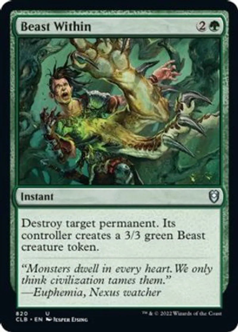 Magic: the Gathering (mtg) Uncommon Instant Beast Within from Commander Legends: Battle for Baldur's Gate (CLB) last updated 2026-02-25 15:38:06