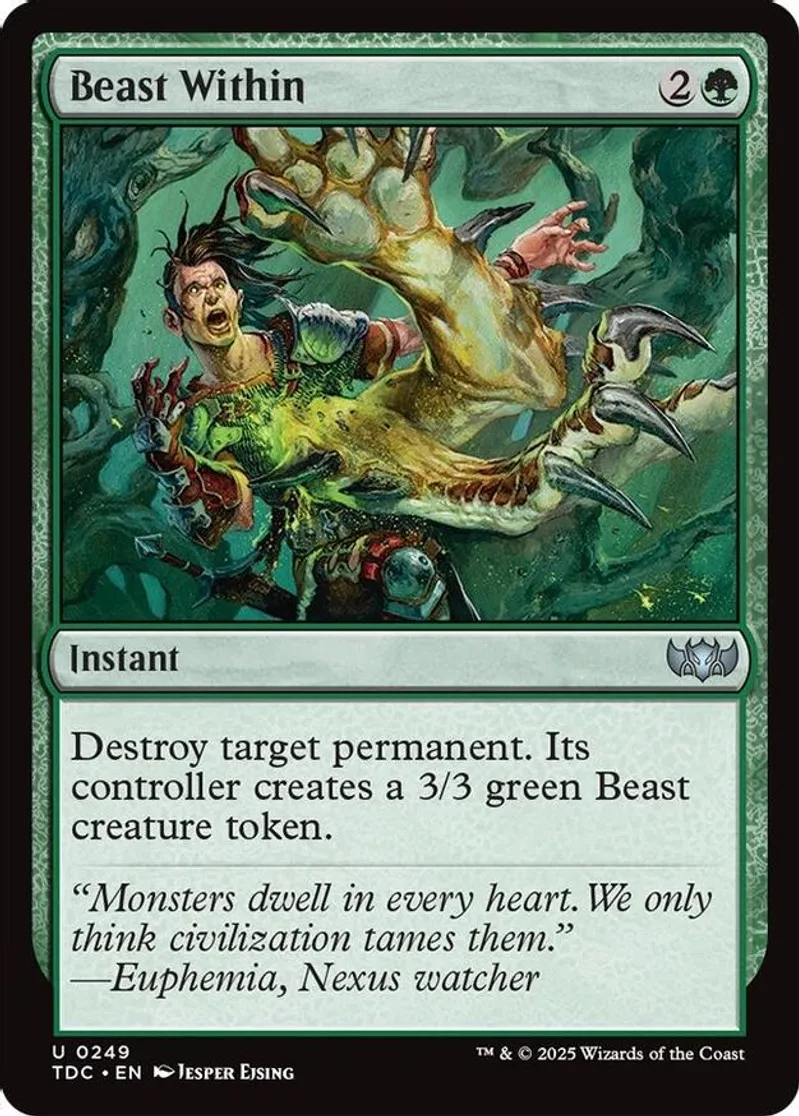 Magic: the Gathering (mtg) Uncommon instant Beast Within from Commander: Tarkir: Dragonstorm (TDC) last updated 2025-12-17 15:17:35
