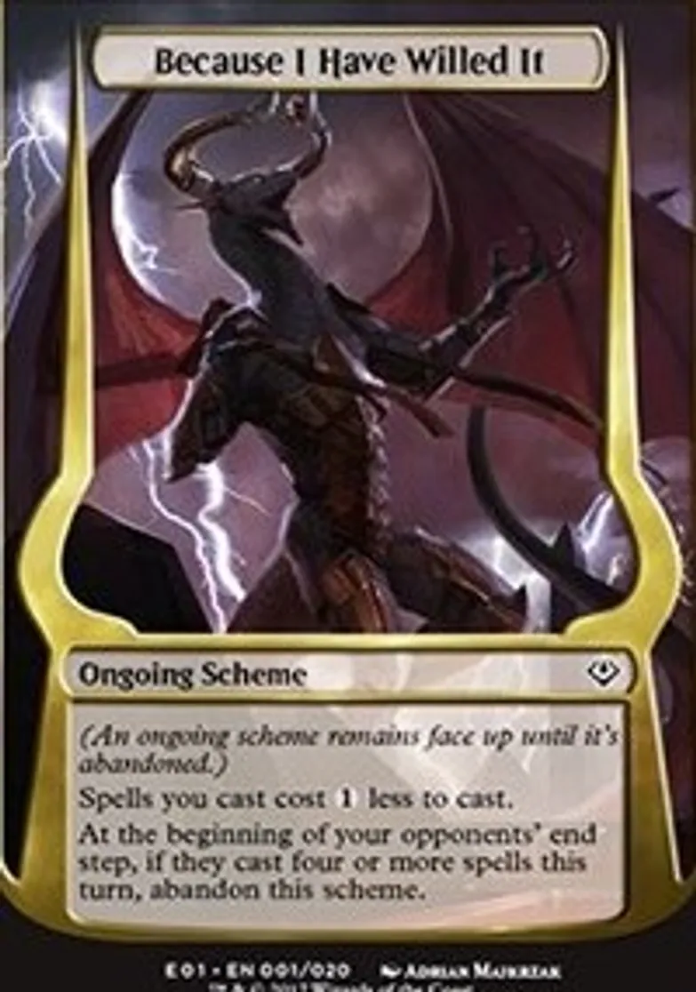 Because I Have Willed It (Archenemy: Nicol Bolas) is a Common in the set Oversize Cards.