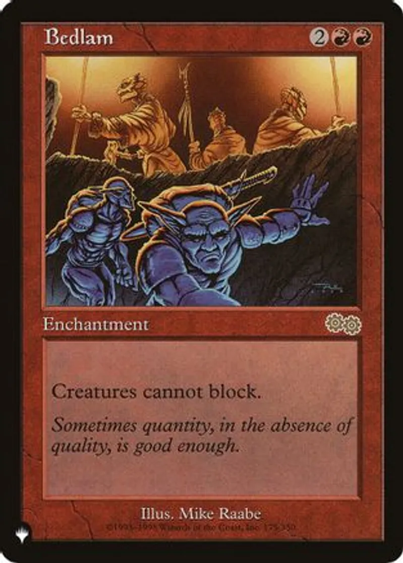 Magic: the Gathering (mtg) Rare Enchantment Bedlam from The List (PLIST) last updated 2026-02-24 14:35:06