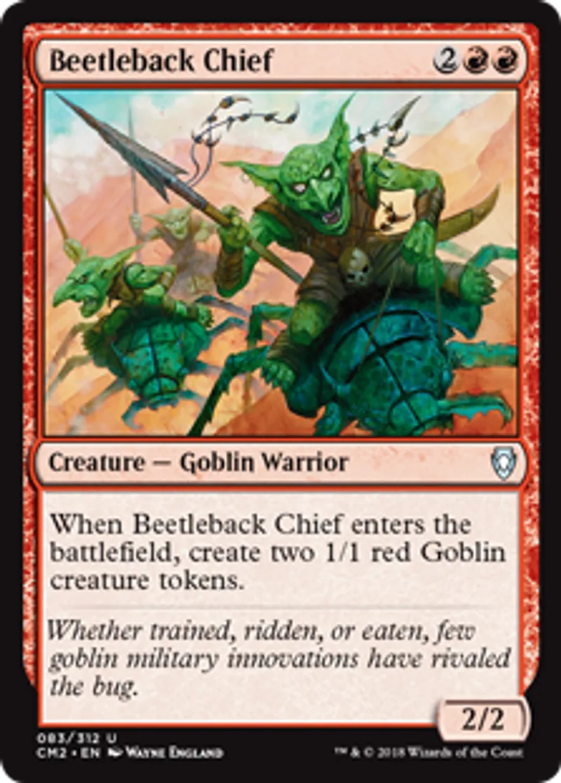 | Oracle Text | When Beetleback Chief enters the battlefield, create two 1/1 red Goblin creature tokens. | ||
