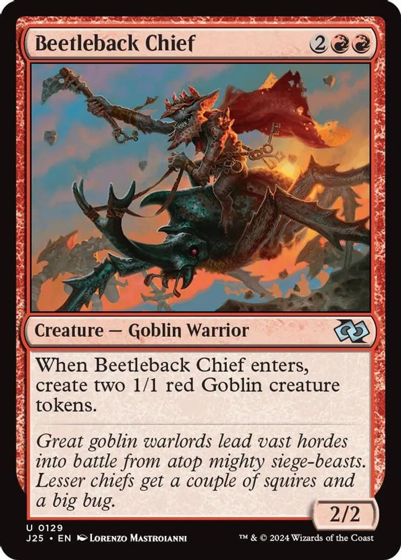 Magic: the Gathering (mtg) Uncommon creature — goblin warrior Beetleback Chief from Foundations Jumpstart (J25) last updated 2026-02-21 15:33:02