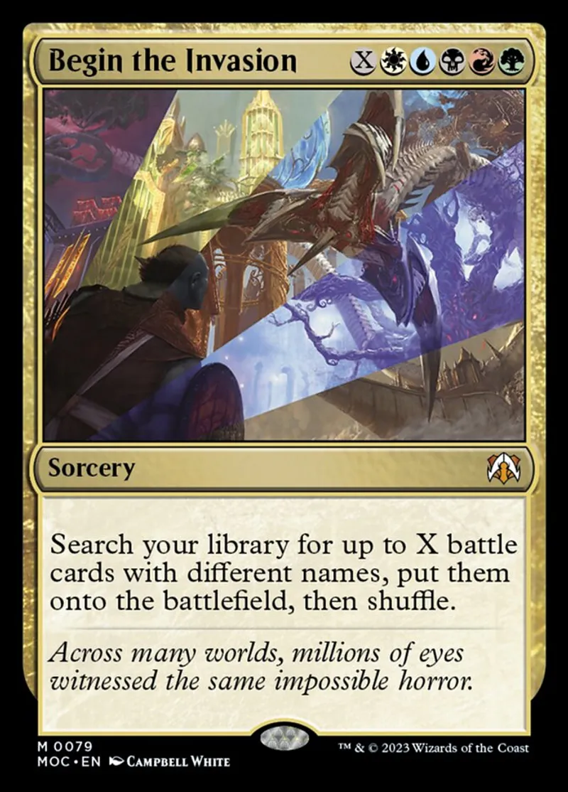 Begin the Invasion is a mythic in the set March of the Machine Commander.