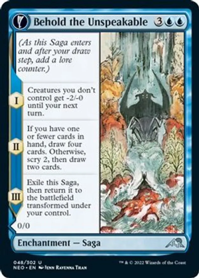 Magic: the Gathering (mtg) Uncommon Enchantment — Saga // Enchantment Creature — Spirit Behold the Unspeakable from Kamigawa: Neon Dynasty (neo) last updated 2026-02-21 16:02:32