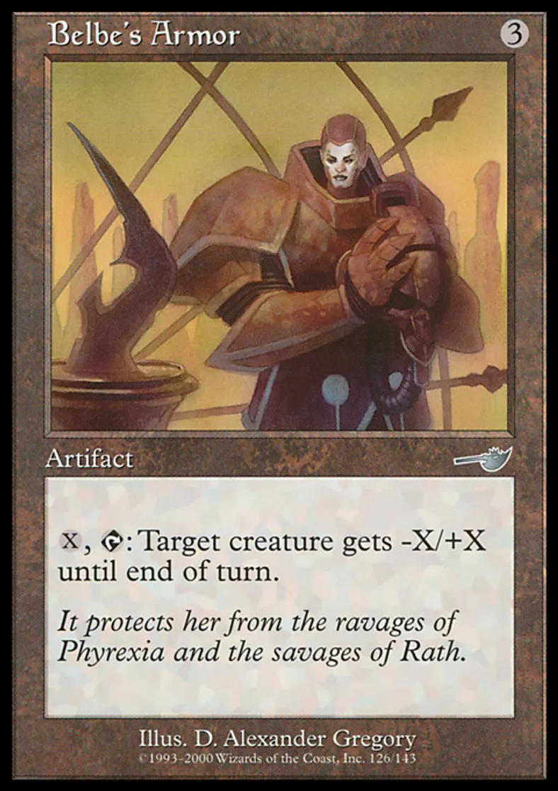 Magic: the Gathering (mtg) Uncommon Artifact Belbe's Armor from Nemesis (NMS) last updated 2026-02-25 15:50:32