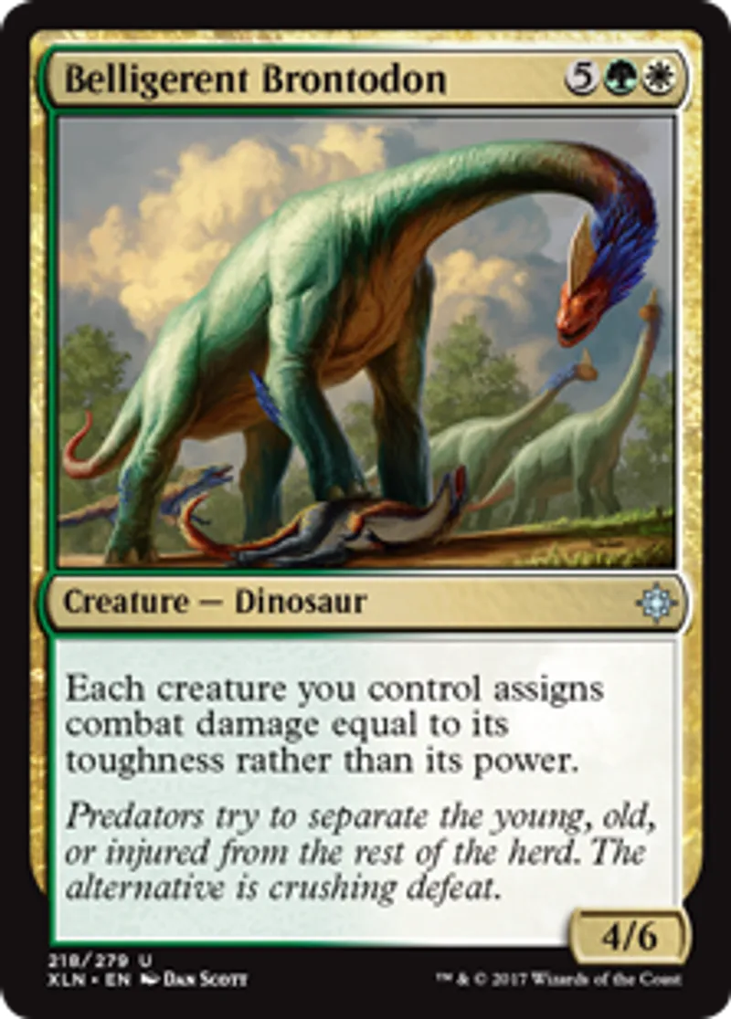 Magic: the Gathering (mtg) Uncommon Creature - Dinosaur Belligerent Brontodon from Ixalan (XLN) last updated 2026-02-21 16:47:36