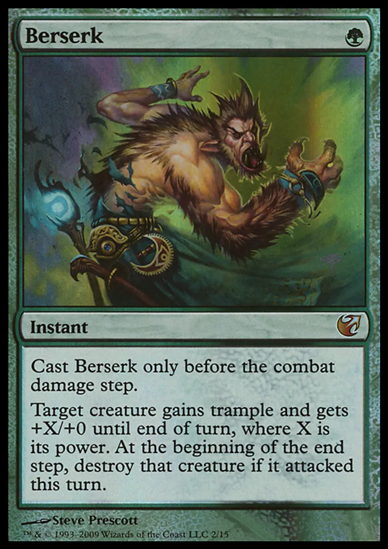 | Oracle Text | Cast Berserk only before the combat damage step. Target creature gains trample and gets +X/+0 until end of turn, where X is its power. At the beginning of the next end step, destroy that creature if it attacked this turn. | ||