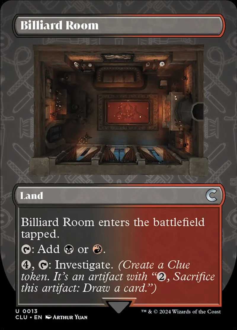 Billiard Room (Borderless) is a uncommon in the set Ravnica: Clue Edition.