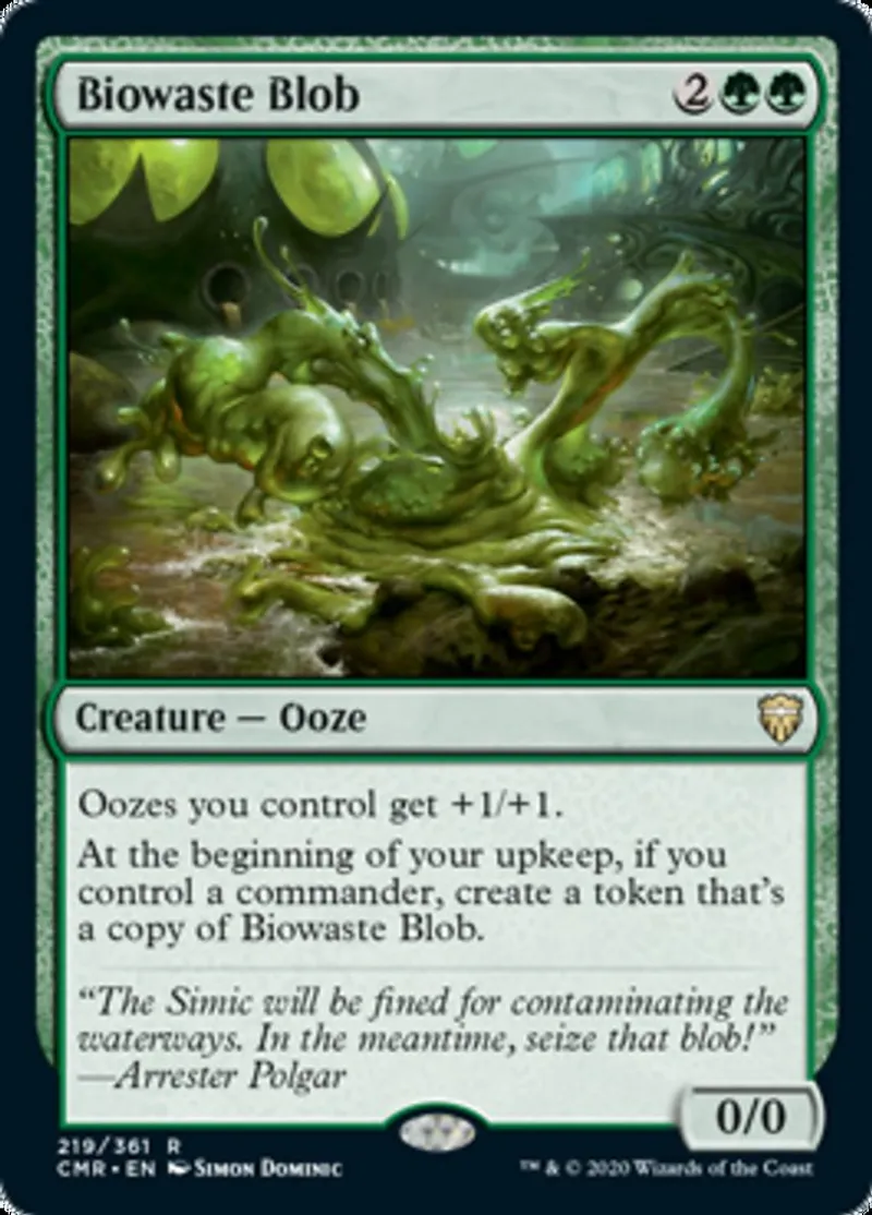 At the beginning of your upkeep, if you control a commander, create a token that's a copy of Biowaste Blob. | ||