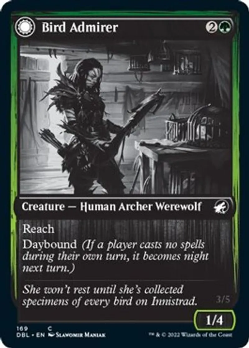 Magic: the Gathering (mtg) Common Creature — Human Archer Werewolf Bird Admirer from Innistrad: Double Feature (dbl) last updated 2026-02-21 16:44:36