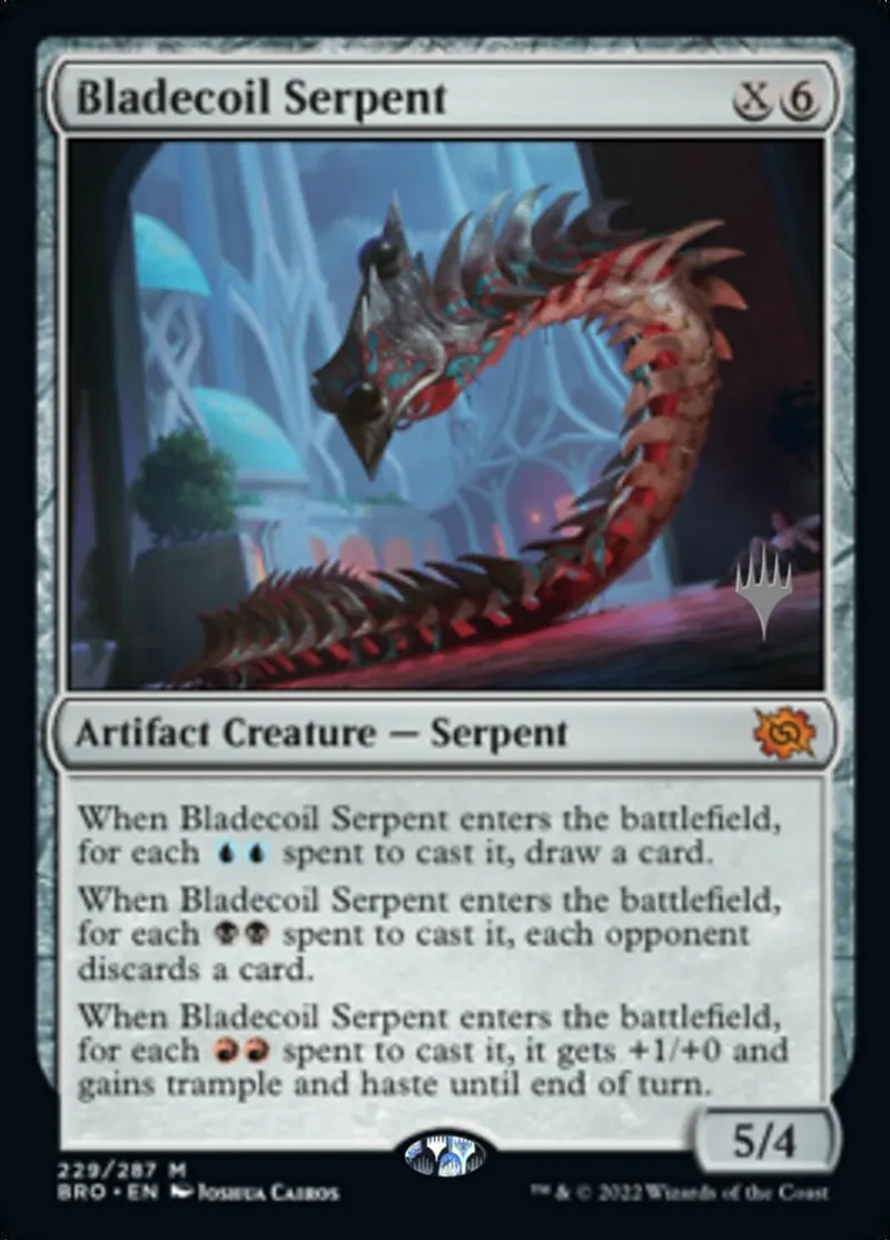 Magic: the Gathering (mtg) Mythic Rare Artifact Creature — Serpent Bladecoil Serpent from Promo Pack: The Brothers' War (PBRO) last updated 2026-02-25 15:41:02