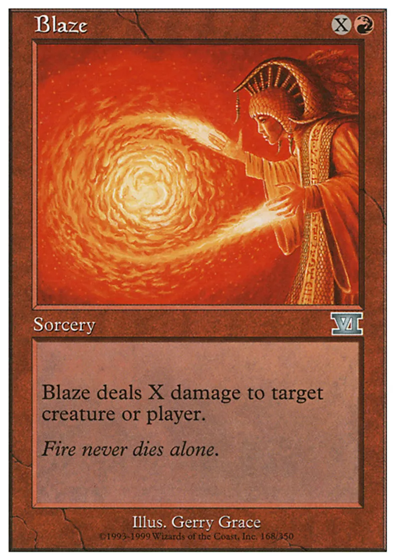 Magic: the Gathering (mtg) Uncommon Sorcery Blaze from Classic Sixth Edition (6ED) last updated 2026-02-21 17:33:06