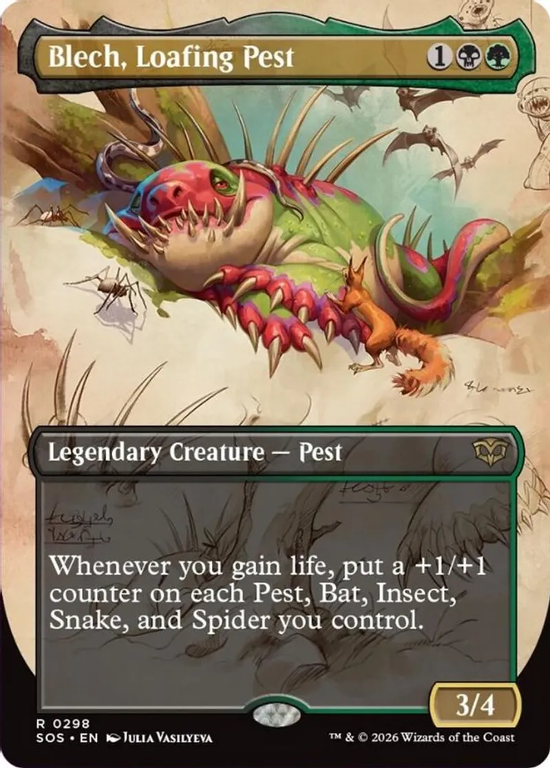 Blech, Loafing Pest (Borderless) is a Rare in the set Secrets of Strixhaven.