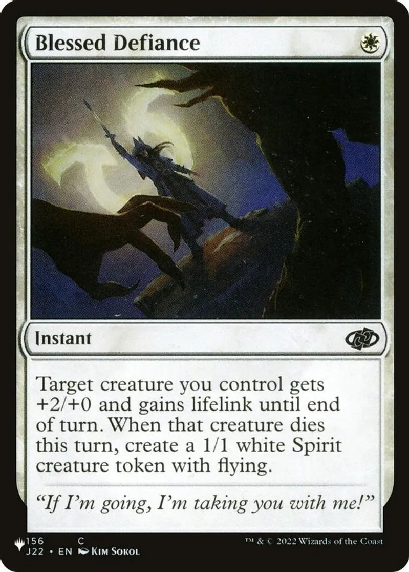 Magic: the Gathering (mtg) Common instant Blessed Defiance from The List Reprints (PLIST) last updated 2026-02-21 15:28:36