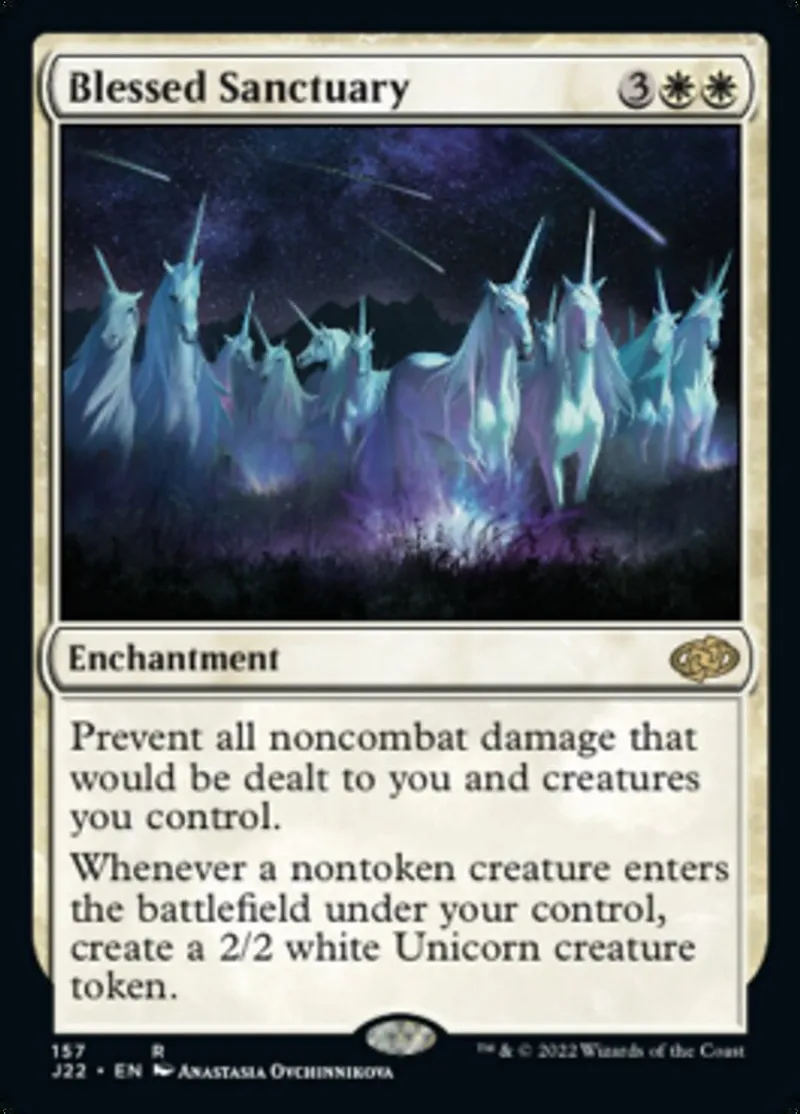 Magic: the Gathering (mtg) rare Enchantment Blessed Sanctuary from Jumpstart 2022 (j22) last updated 2026-02-24 14:56:02