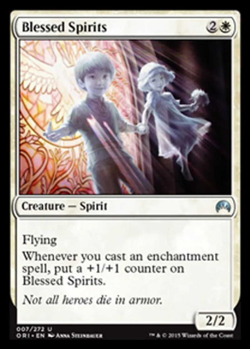 | Oracle Text | Flying Whenever you cast an enchantment spell, put a +1/+1 counter on Blessed Spirits. | ||