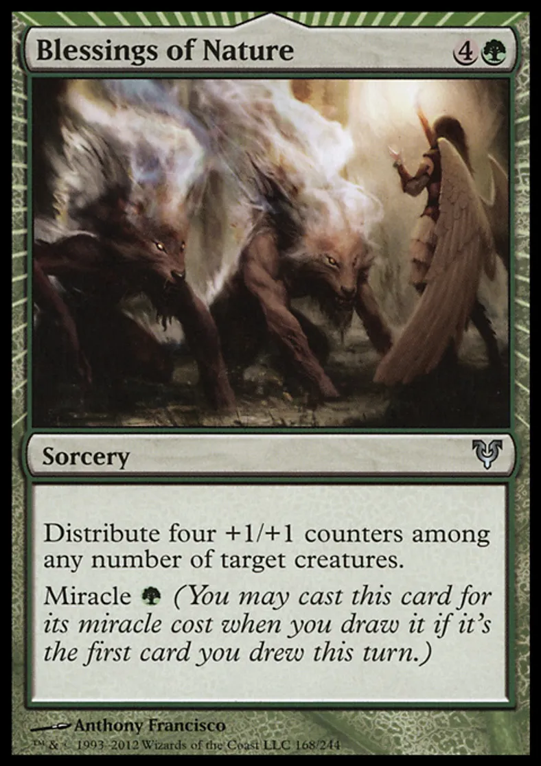 Magic: the Gathering (mtg) Uncommon Sorcery Blessings of Nature from Avacyn Restored (AVR) last updated 2026-02-21 17:08:02