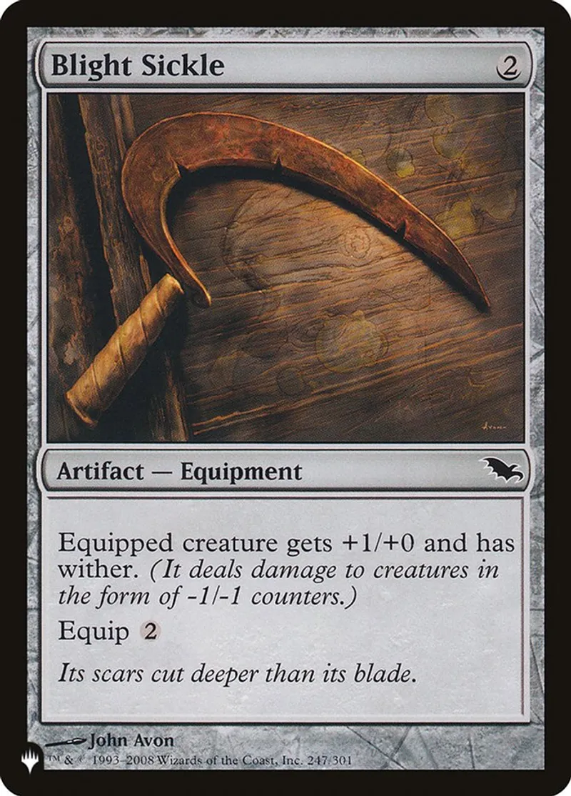 Magic: the Gathering (mtg) Common Artifact — Equipment Blight Sickle from The List (plist) last updated 2026-02-24 15:29:33
