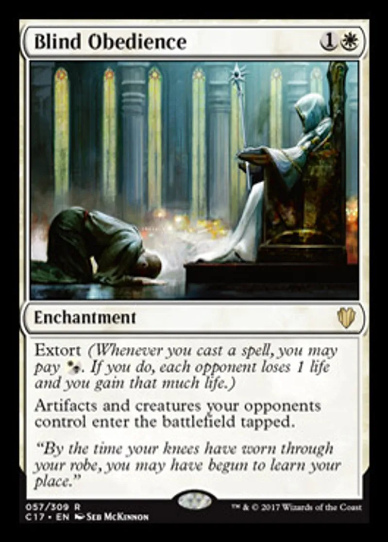 Magic: the Gathering (mtg) Rare Enchantment Blind Obedience from Commander 2017 (C17) last updated 2026-02-24 14:38:37
