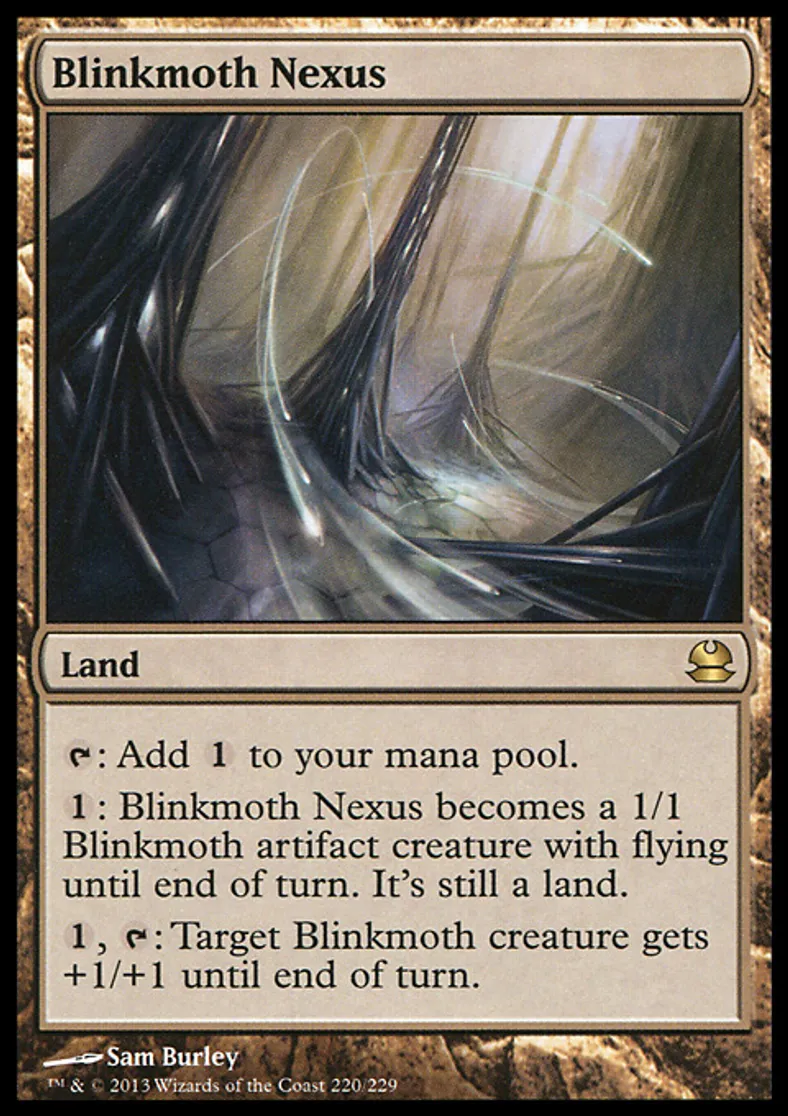 | Oracle Text | {{t}}: Add {{1}} to your mana pool. {{1}}: Blinkmoth Nexus becomes a 1/1 Blinkmoth artifact creature with flying until end of turn. It's still a land. {{1}}, {{t}}: Target Blinkmoth creature gets +1/+1 until end of turn. | ||
