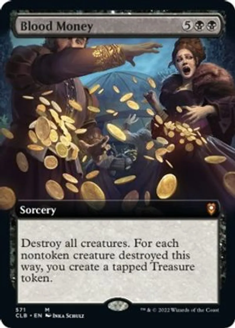 Blood Money (Extended Art) is a Mythic Rare in the set Commander Legends: Battle for Baldur's Gate.