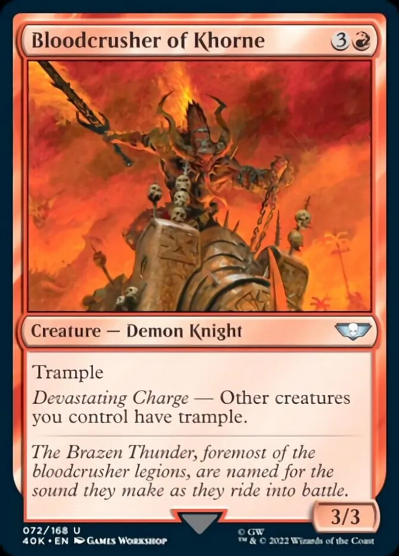 Magic: the Gathering (mtg) uncommon Creature — Demon Knight Bloodcrusher of Khorne from Warhammer 40,000 (40k) last updated 2026-02-24 14:55:03