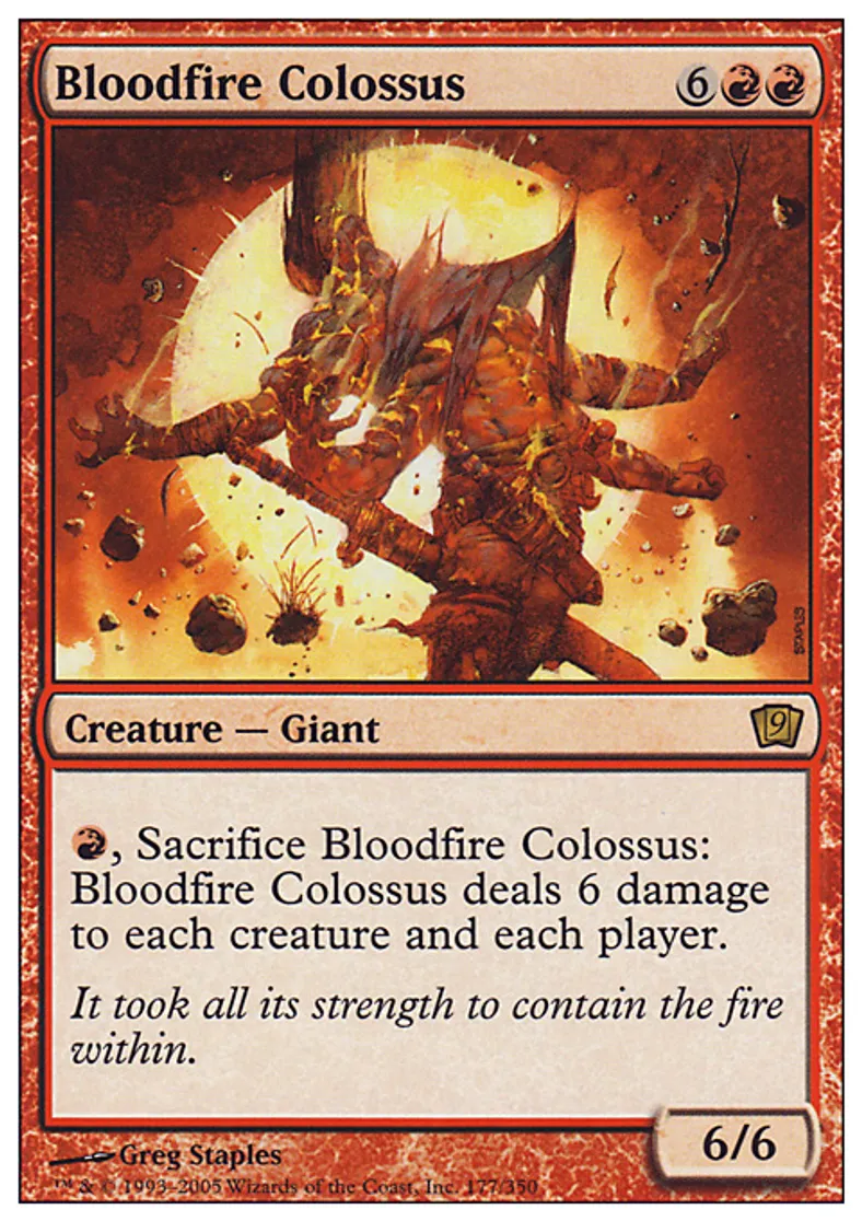 | Oracle Text | {{r}}, Sacrifice Bloodfire Colossus: Bloodfire Colossus deals 6 damage to each creature and each player. | ||