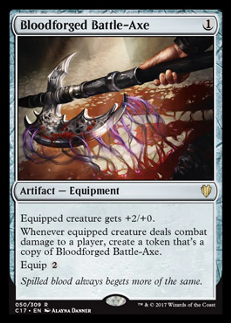 Magic: the Gathering (mtg) Rare Artifact - Equipment Bloodforged Battle-Axe from Commander 2017 (C17) last updated 2026-02-24 14:59:32
