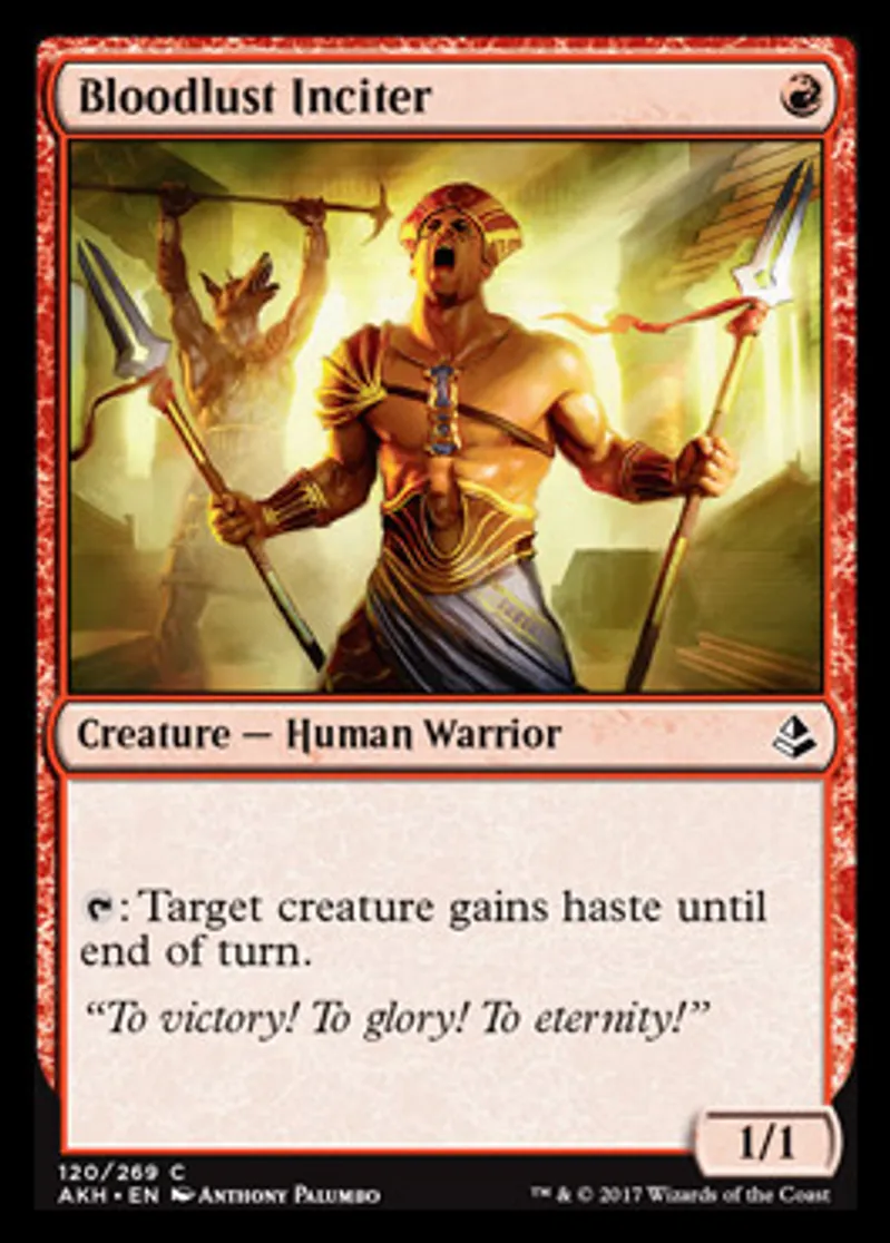 Magic: the Gathering (mtg) Common Creature - Human Warrior Bloodlust Inciter from Amonkhet (AKH) last updated 2026-02-21 16:45:32