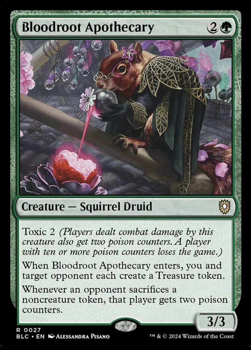 Magic: the Gathering (mtg) rare Creature — Squirrel Druid Bloodroot Apothecary from Bloomburrow Commander (blc) last updated 2026-02-25 15:17:01