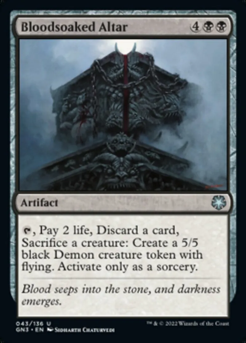 Magic: the Gathering (mtg) uncommon Artifact Bloodsoaked Altar from Game Night: Free-for-All (gn3) last updated 2026-02-21 16:14:36