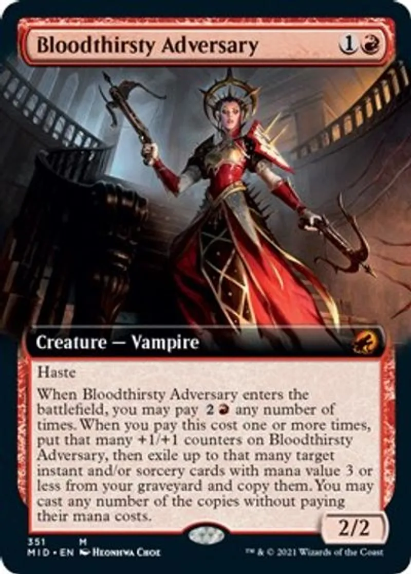Bloodthirsty Adversary (Extended Art) is a Mythic Rare in the set Innistrad: Midnight Hunt.