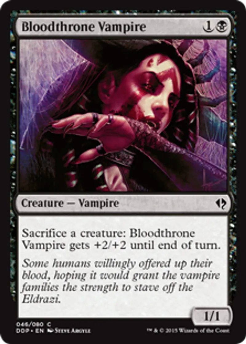 | Oracle Text | Sacrifice a creature: Bloodthrone Vampire gets +2/+2 until end of turn. | ||