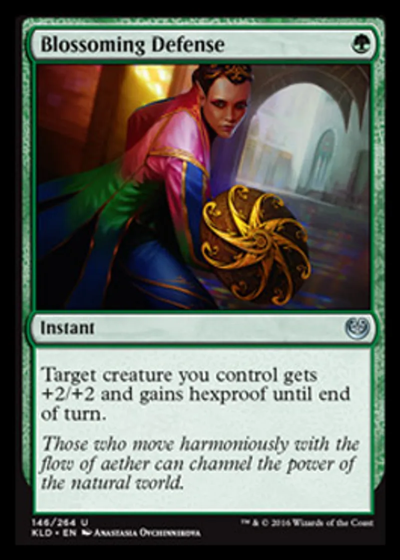 Magic: the Gathering (mtg) Uncommon Instant Blossoming Defense from Kaladesh (KLD) last updated 2026-02-24 16:03:02