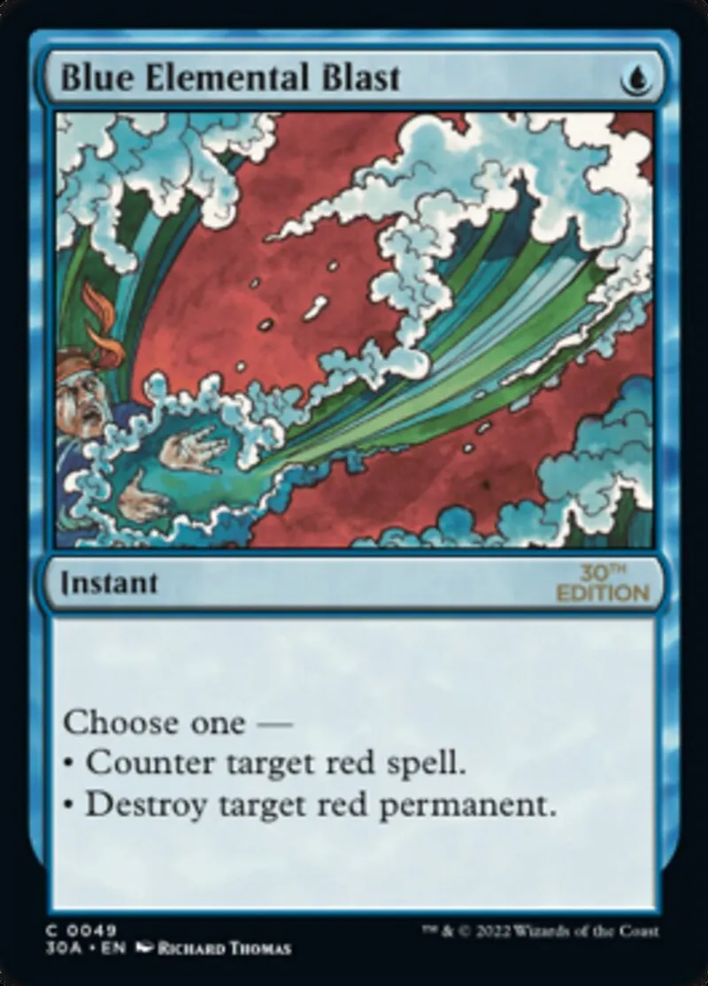 Blue Elemental Blast is a common in the set 30th Anniversary Edition.