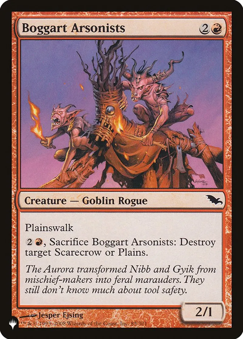 Magic: the Gathering (mtg) Common Creature — Goblin Rogue Boggart Arsonists from The List (plist) last updated 2026-04-04 16:33:35
