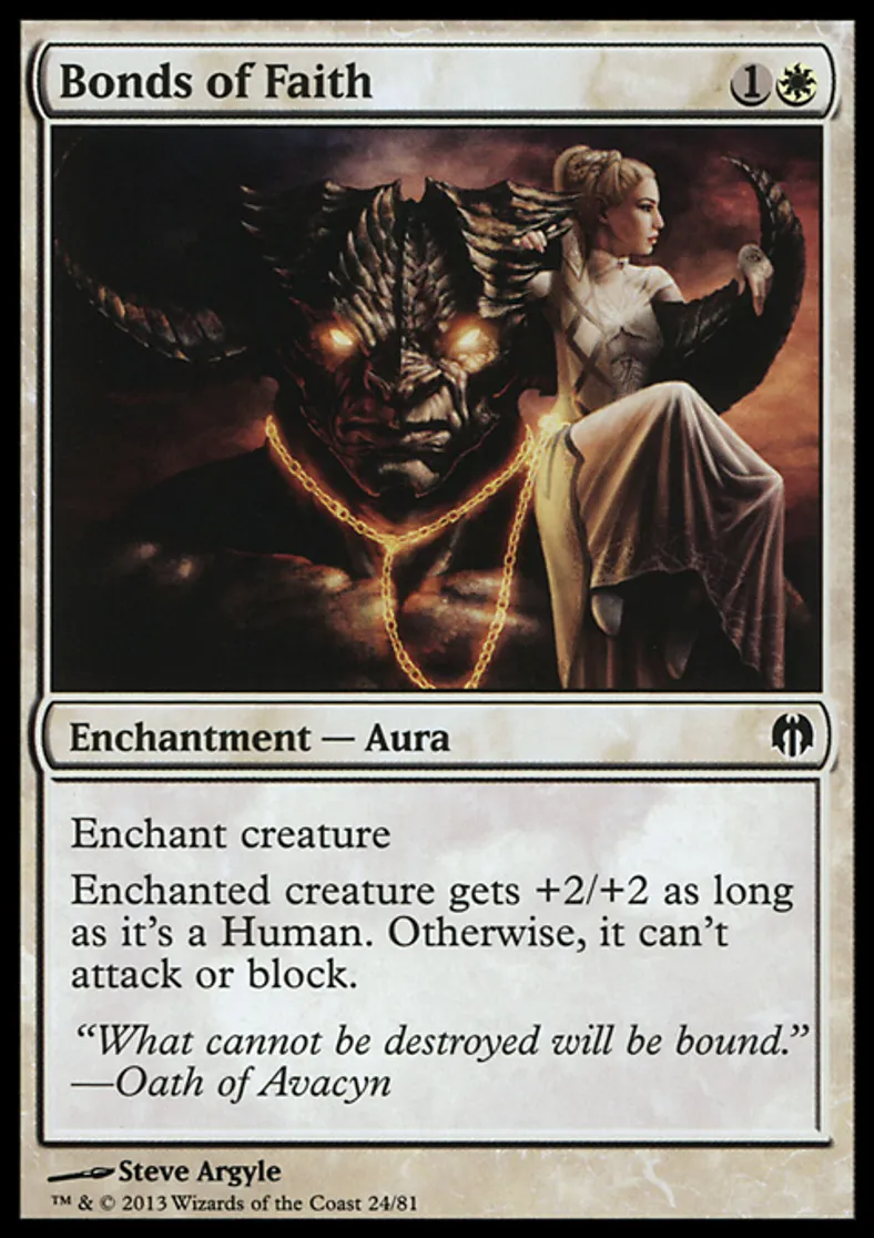 Magic: the Gathering (mtg) Common Enchantment- Aura Bonds of Faith from Duel Decks: Heroes vs. Monsters (DDL) last updated 2026-02-21 17:19:36