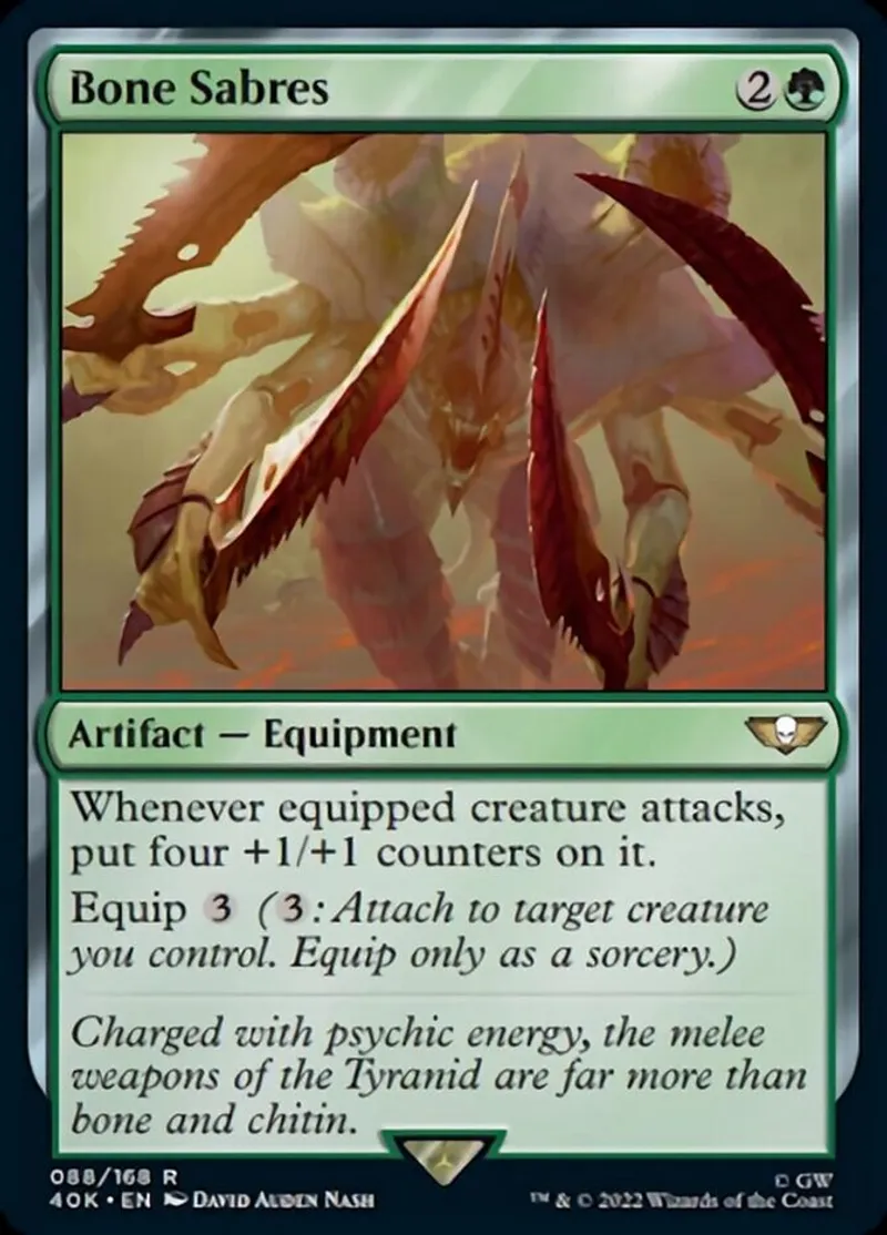 Magic: the Gathering (mtg) rare Artifact — Equipment Bone Sabres from Warhammer 40,000 (40k) last updated 2026-02-24 14:24:36