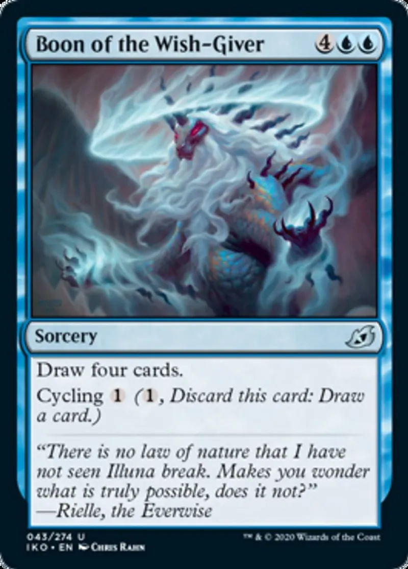 Magic: the Gathering (mtg) uncommon Sorcery Boon of the Wish-Giver from Ikoria: Lair of Behemoths (iko) last updated 2026-02-21 16:23:32