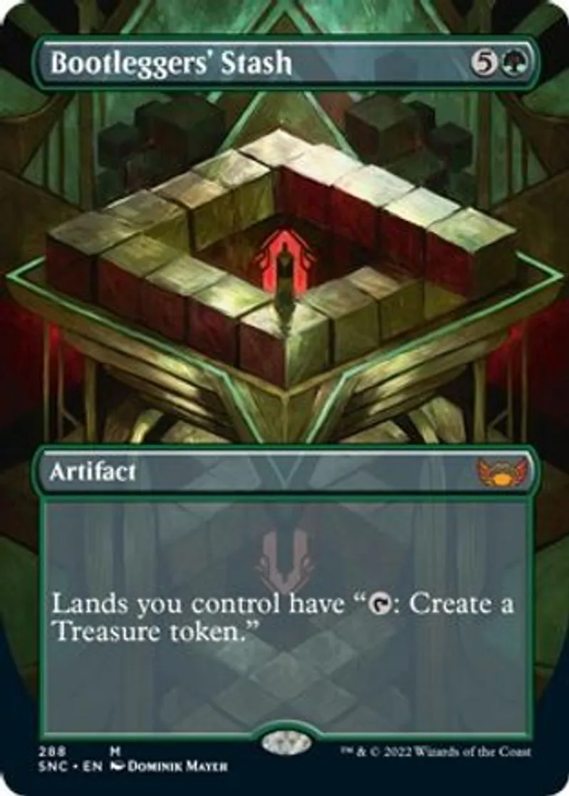 Bootleggers' Stash (Borderless) is a Mythic Rare in the set Streets of New Capenna.