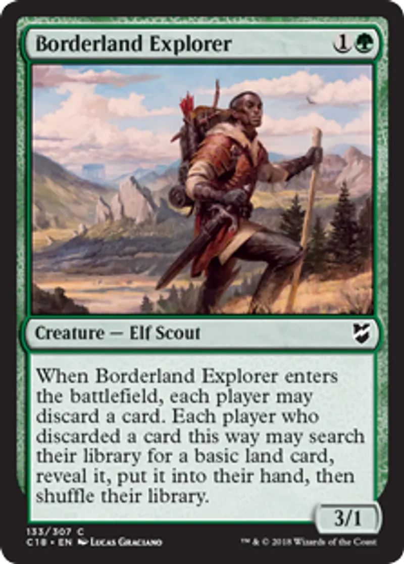 | Oracle Text | When Borderland Explorer enters the battlefield, each player may discard a card. Each player who discarded a card this way may search their library for a basic land card, reveal it, put it into their hand, then shuffle their library. | ||