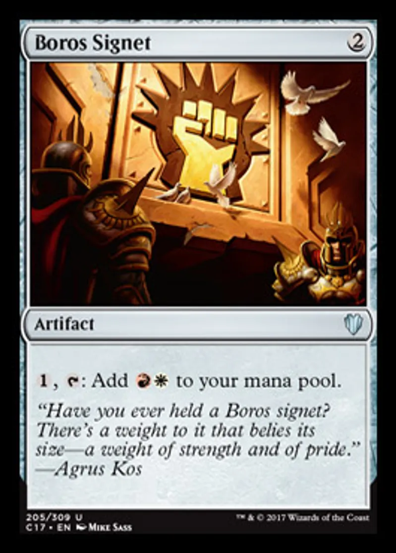 Magic: the Gathering (mtg) Uncommon Artifact Boros Signet from Commander 2017 (C17) last updated 2026-01-31 15:52:32