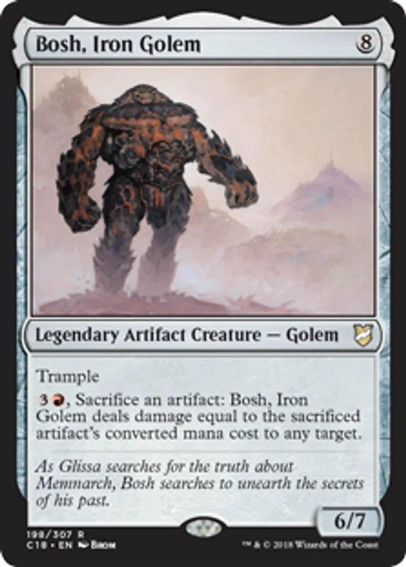 Magic: the Gathering (mtg) Rare Legendary Artifact Creature - Golem Bosh, Iron Golem from Commander 2018 (C18) last updated 2026-02-22 16:07:04
