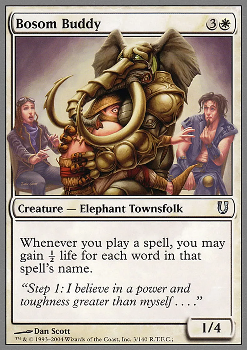 Magic: the Gathering (mtg) Uncommon Creature- Elephant Townsfolk Bosom Buddy from Unhinged (UNH) last updated 2026-02-24 15:52:32