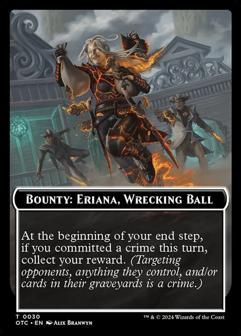 Magic: the Gathering (mtg) Token Token Bounty: Eriana, Wrecking Ball // Bounty Rules Double-Sided Token from Outlaws of Thunder Junction Commander Tokens (TOTC) last updated 2025-12-13 15:17:02