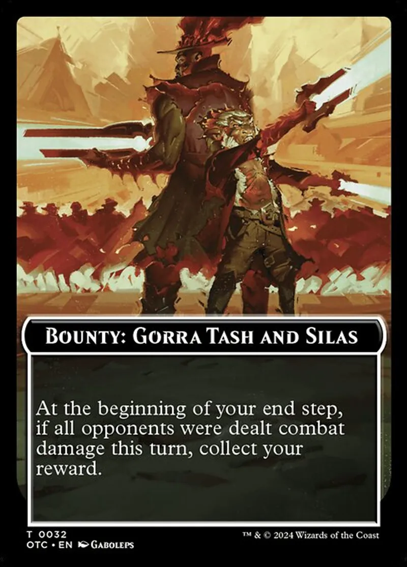 Magic: the Gathering (mtg) Token Token Bounty: Gorra Tash and Silas // Bounty Rules Double-Sided Token from Outlaws of Thunder Junction Commander Tokens (TOTC) last updated 2025-12-13 15:17:02