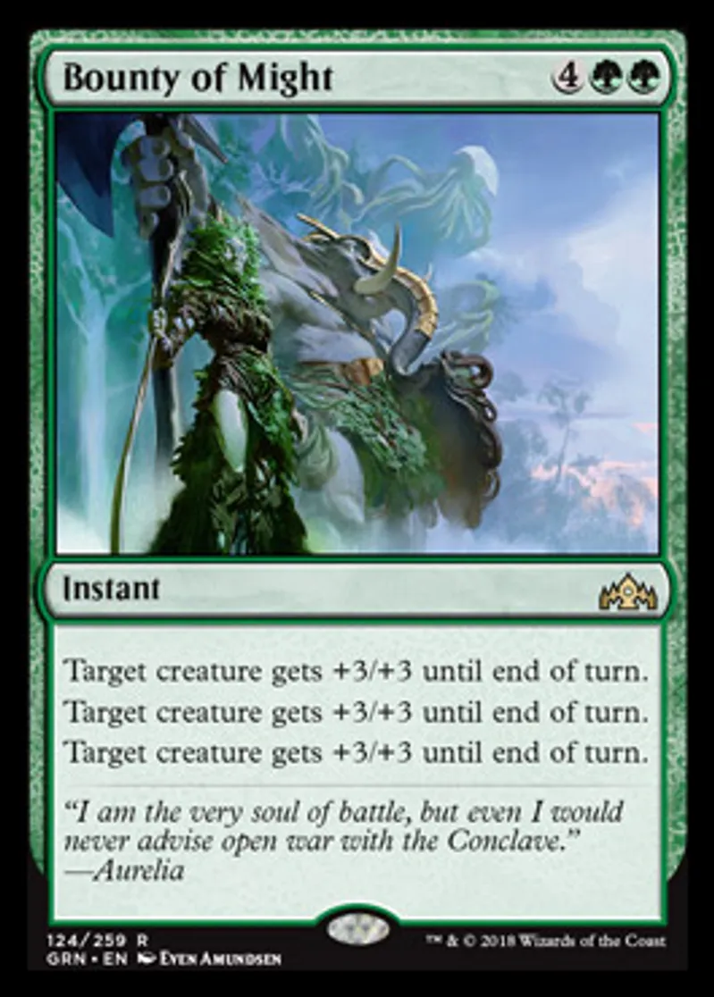 Magic: the Gathering (mtg) Rare Instant Bounty of Might from Guilds of Ravnica (GRN) last updated 2026-02-21 16:54:02