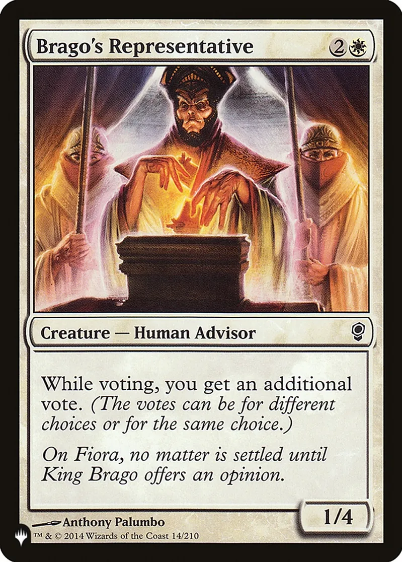 Magic: the Gathering (mtg) Common Creature — Human Advisor Brago's Representative from The List (PLIST) last updated 2026-02-21 15:41:32